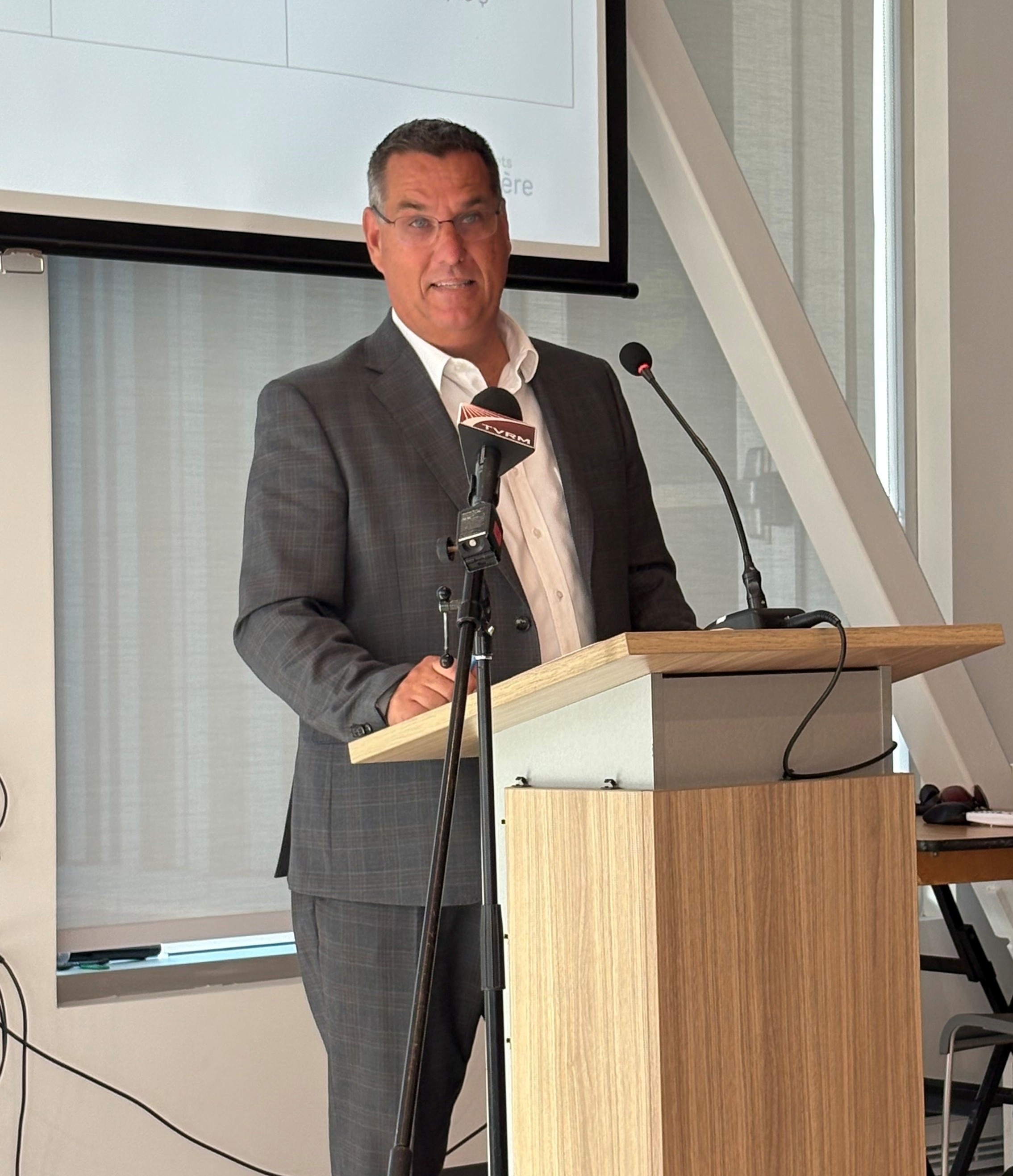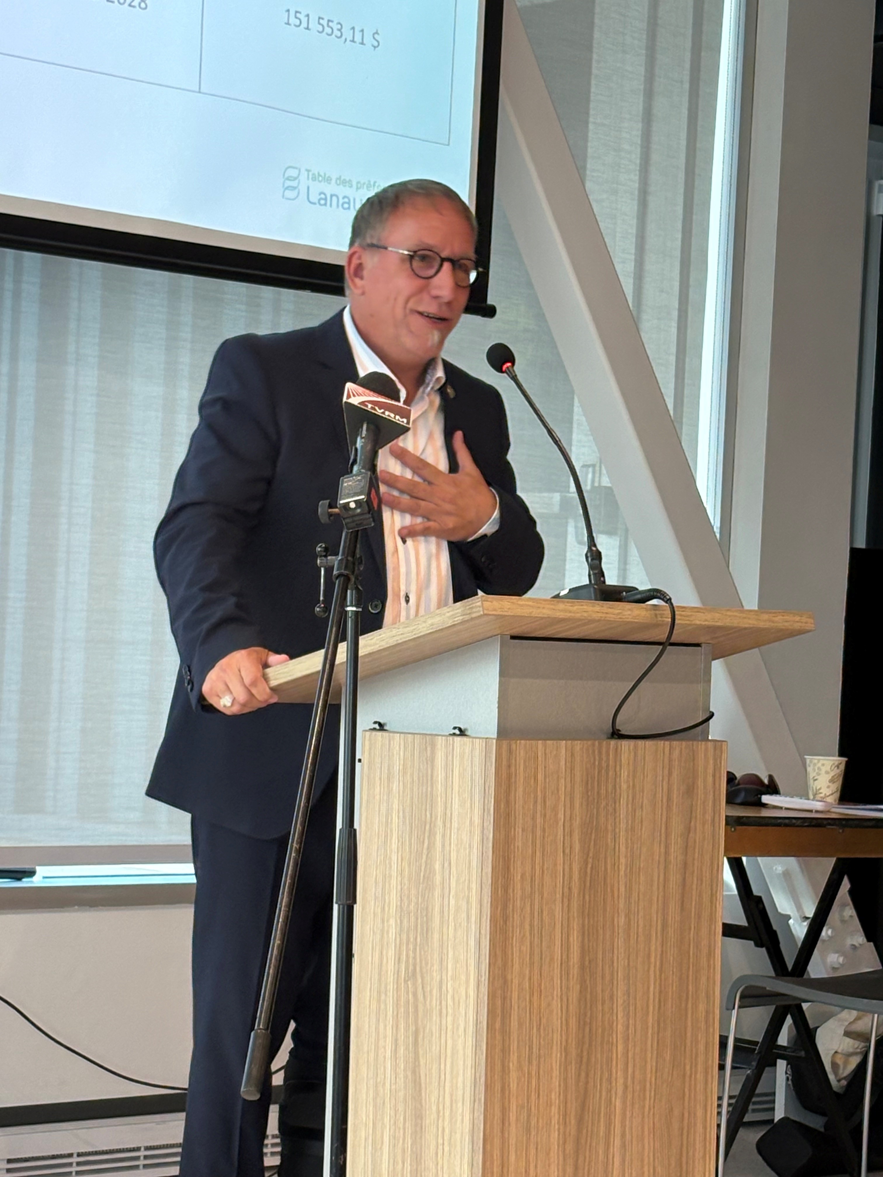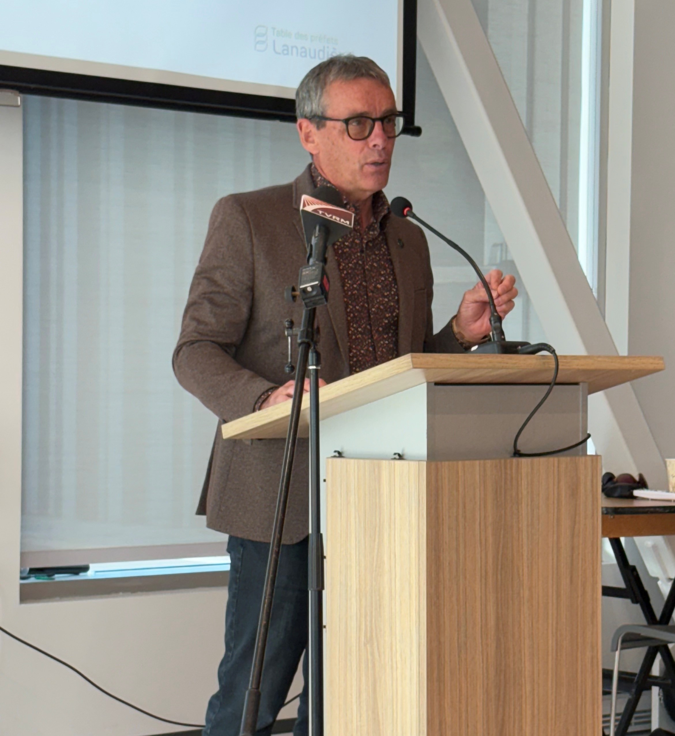 Le vice-président de la Table des préfets de Lanaudière et préfet de la MRC de Montcalm, Patrick Massé, a présenté les projets retenus dans les MRC de Montcalm et de Joliette. (Photo Médialo – Marie-Christine Gaudreau)