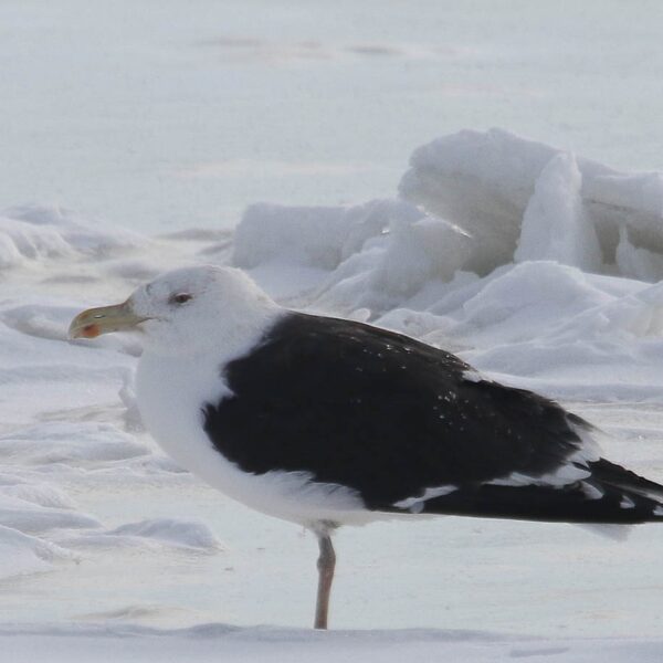 L’espèce pourrait, à première vue, être confondue avec les « goélands du McDonald’s», si ce n’était de leur taille impressionnante pouvant atteindre jusqu’à 1m65, les ailes ouvertes. Selon Samuel Denault, biologiste à l’observatoire d’oiseaux de l’Université de McGill, c’est le plus grand goéland au monde. Il était autrement appelé le goéland à manteau noir, puisque ses ailes et son dos sont complètement noirs, lorsqu’il atteint sa maturité à quatre ans. Il est reconnaissable par sa tête d’un blanc immaculé et ses pattes roses.