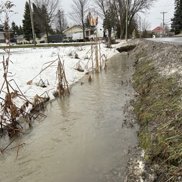 En 2025, la Ville a investi près de 750 000$ pour réaliser des travaux d’entretien et de réfection sur une vingtaine d’ouvrages de gestion des eaux pluviales. Au total, ce sont 234 km de conduites sanitaires et pluviales et 6262 puisards qui ont été nettoyées, 52 km de conduites inspectées par caméra et 24 km de fossés et ponceaux entretenus.