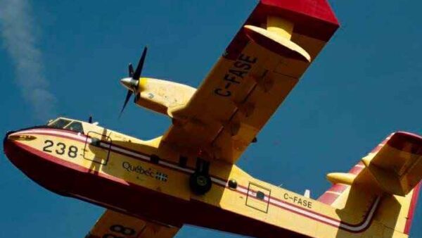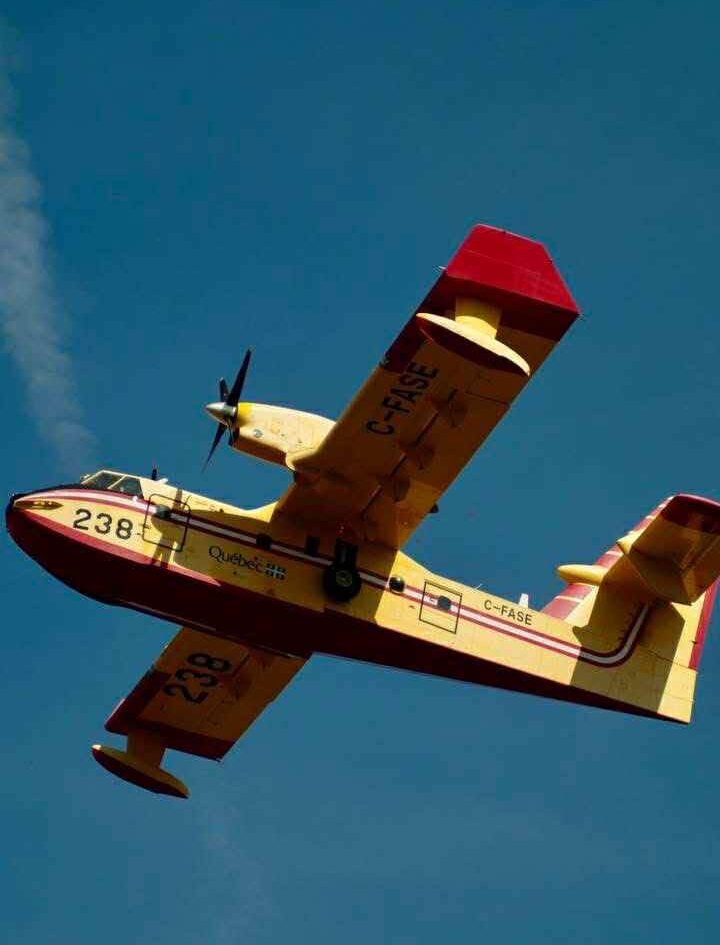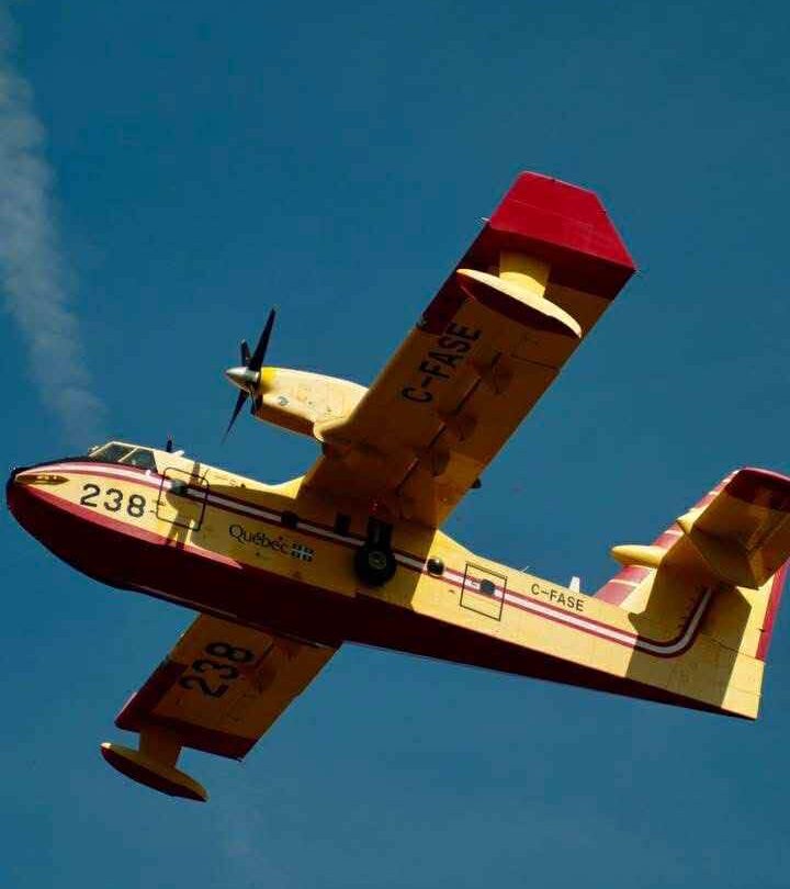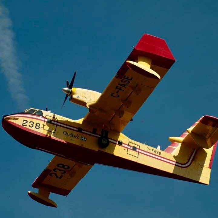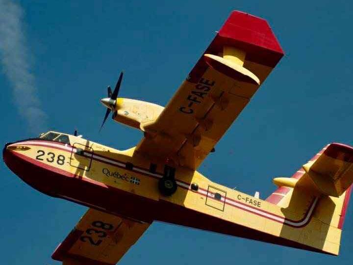 Deux avions citernes sont intervenus sur un feu au rang Sainte-Henriette. (Photo James Horth)